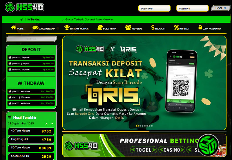 HSS4D di bangun sebagai platform resmi para pecinta game online uang asli yang terpercaya di indonesia di mana para pemain dapat menikmati sensasi ragam permainan yang lengkap tanpa perlu untuk berganti situs serta HSS4D juga menyediakan metode transaksi yang mudah seperti qris yang beroperasi selama 24 jam setiap hari nya.